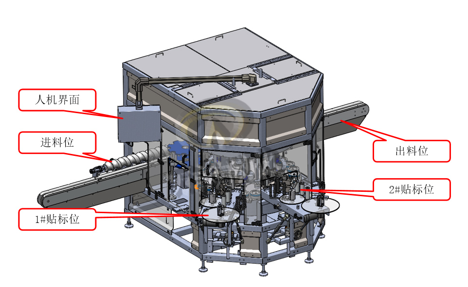 5.貼標完成后隨轉盤向后運動至出料星輪